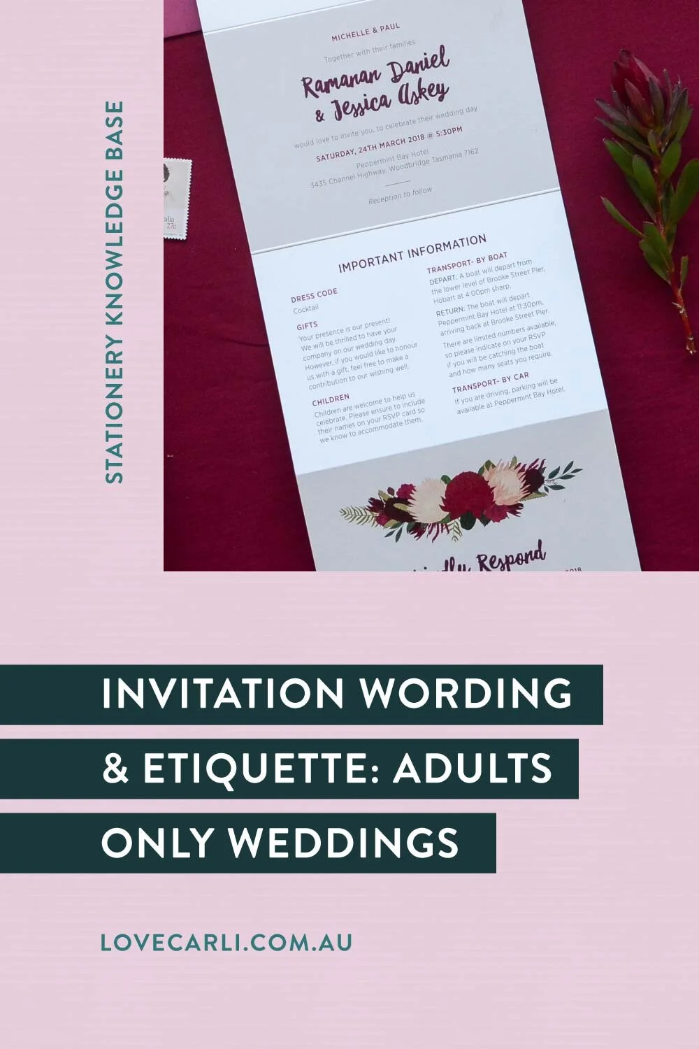 Wedding Invitation Wording Etiquette Adults Only Celebrations Love Carli Custom Wedding Stationery Websites And Signage Mornington Peninsula